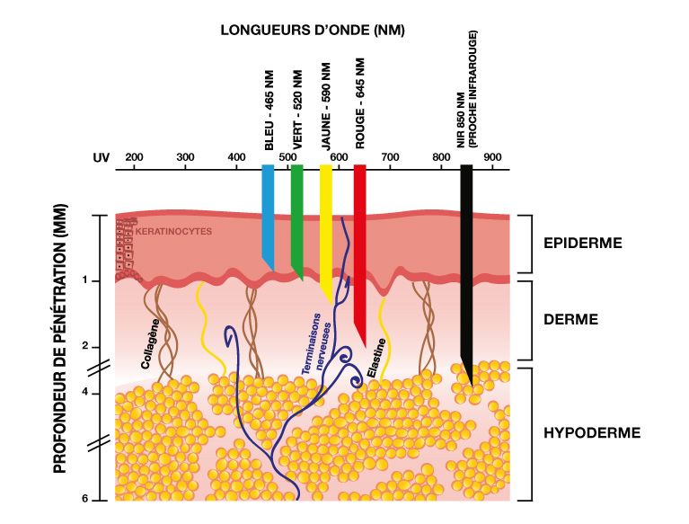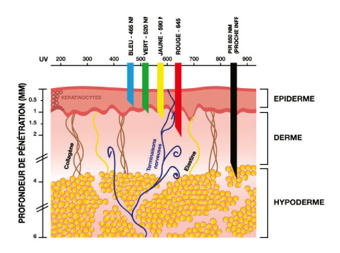 Pénétration de la lumière dans la peau en fonction des longueurs d’ondes